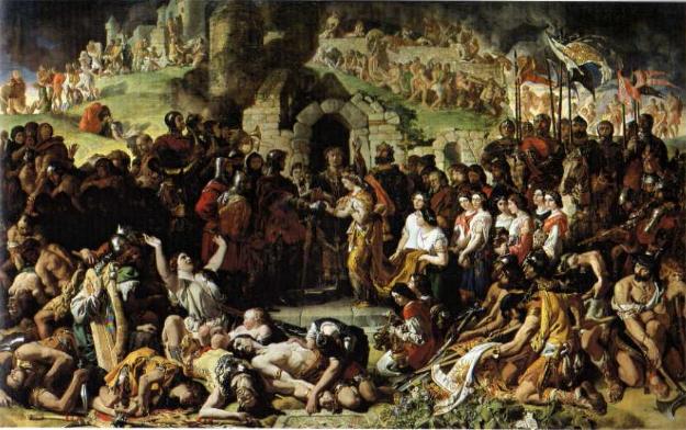 The painting below is by the Irish artist Daniel Maclise (1808-70) Maclise was born in County Cork, after a period as a portrait artist, he began painting historical scenes. The painting below is testament to his sympathy with the Nationalist cause. It depicts the marriage of Richard Fitz Gilbert de Clare (Strongbow) to Aofie daughter of Dermot MacMurrough deposed king of Leinster, who had invited Strongbow to Ireland to help him regain his lost kingdom. This act led to the Normans seizing three quarters of Ireland. The painting hangs in the National Gallery of Ireland, Dublin.