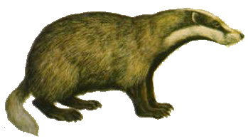 The badger is a shy animal that forages at night using its strong claws and snout to dig up worms and grubs, although it is opportunistic and will eat many other things it finds, during its nocturnal rambles. It makes its home in a burrow called a set, these sets often consist of several family groups living together is a community. Badgers were often blamed for giving TB tuberculoses to cattle, and were often hunted with dogs and men with spades who dug up the set. |