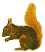 The red squirrel seen in many of Ireland's woodlands is native to the country. It has been displaced from many of its previous habitats by the grey squirrel introduced from north America. The squirrel's habit of burying nuts for future use is beneficial to the woodlands as it often forgets where the nuts are buried and trees grow from the nuts and seeds. |